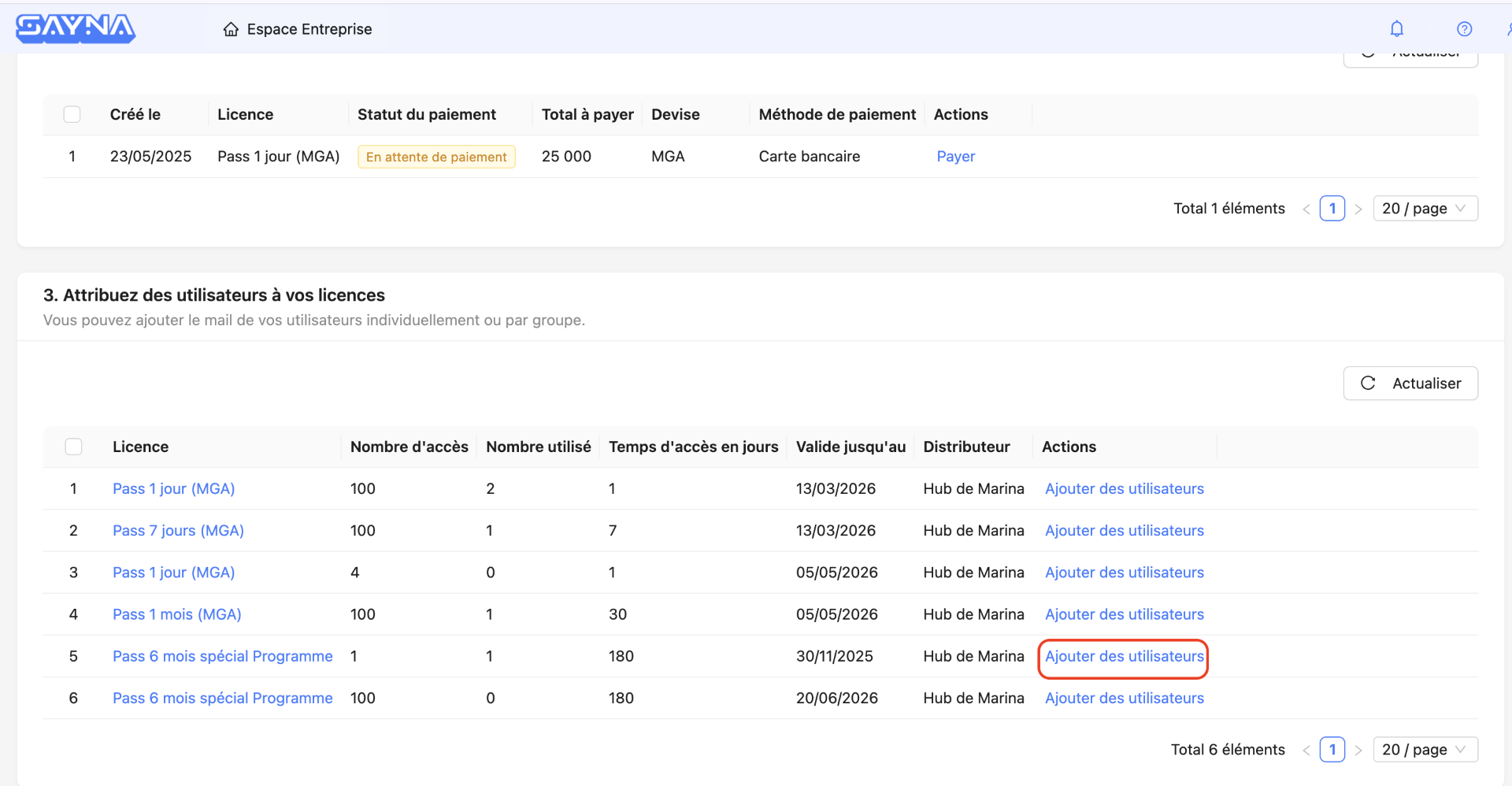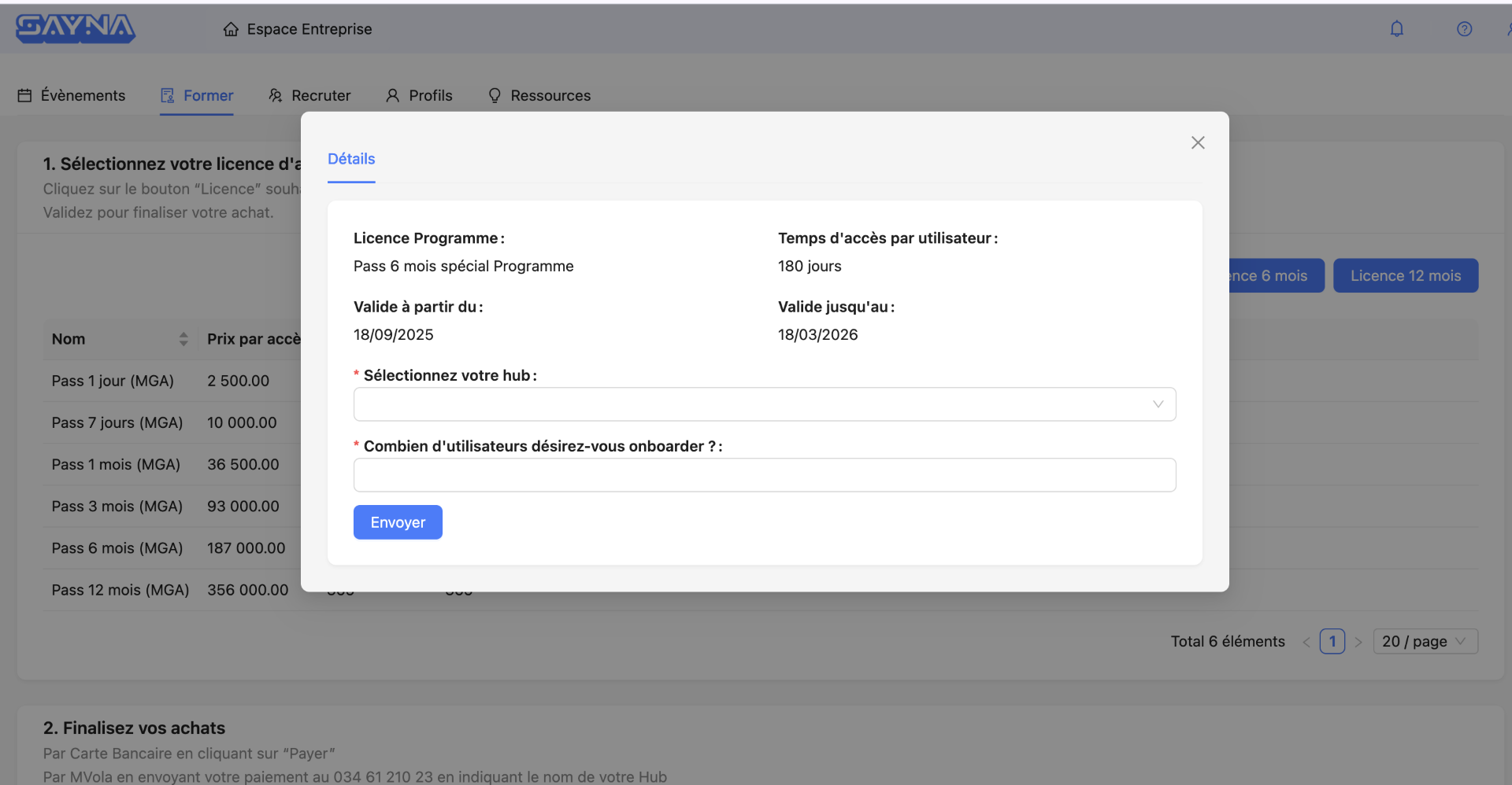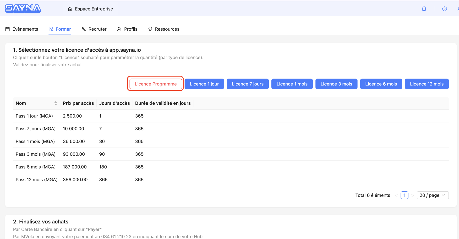Étape 1 : Rendez-vous dans votre Espace Entreprise > Onglet Former > sélectionnez la licence Programme.